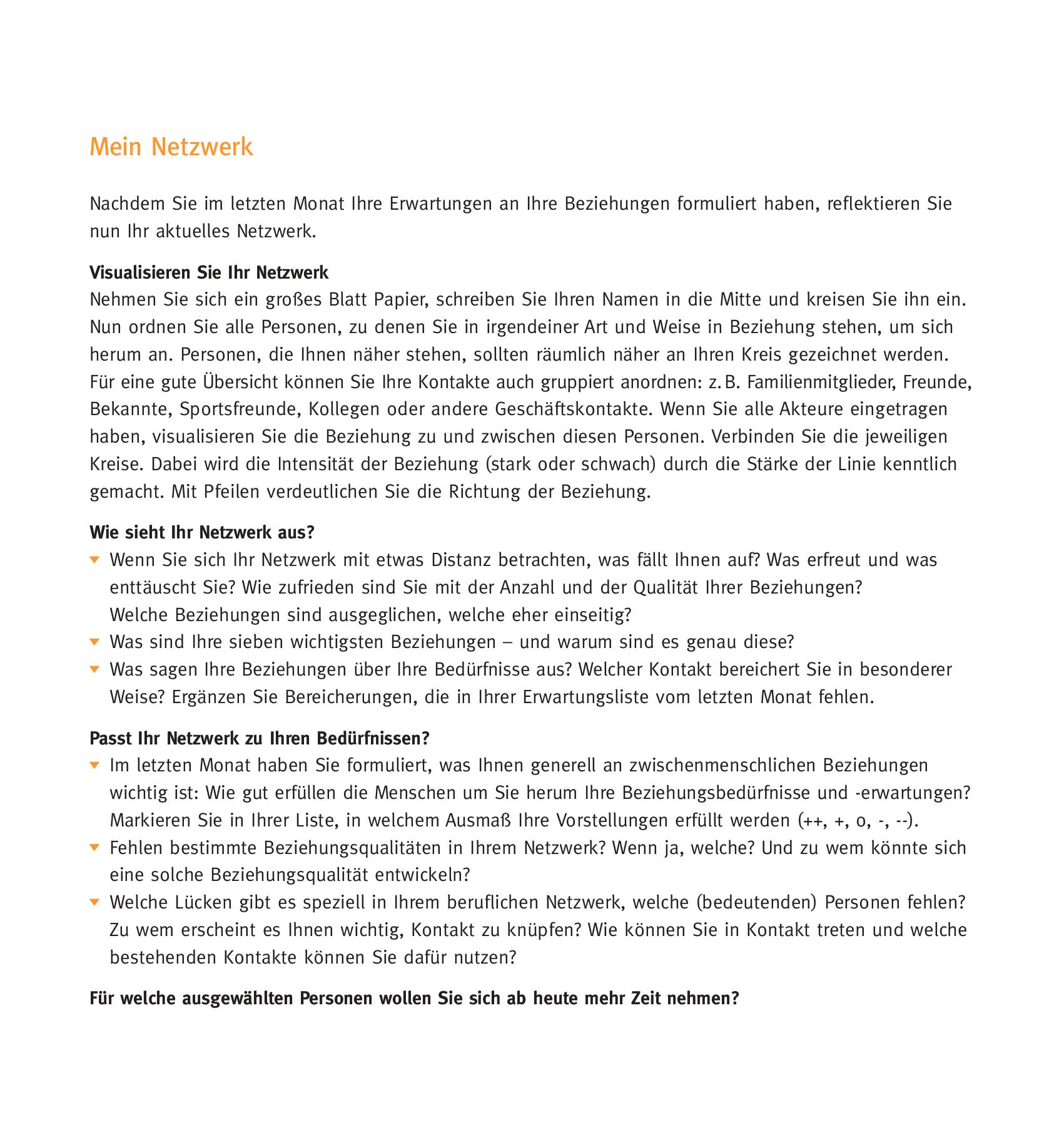 Für ein erfolgreiches Networking bedarf es eines Repertoires an Verhaltensweisen, die dem Aufbau und der Aufrechterhaltung von Beziehungen dienen. Mit dem Kalender werden Sie Ihre Erwartungen an Beziehungen sowie Ihr aktuelles Netzwerk reflektieren, Ihr eigens Profil erarbeiten und die wesentlichen Networkingtechniken kennen lernen. Der Kalender unterstützt Sie, ein Netzwerk zu knüpfen, in dem Sie gut aufgehoben sind, das Sie in schwierigen Situationen auffängt und mit dem Sie dicke Fische fangen können.